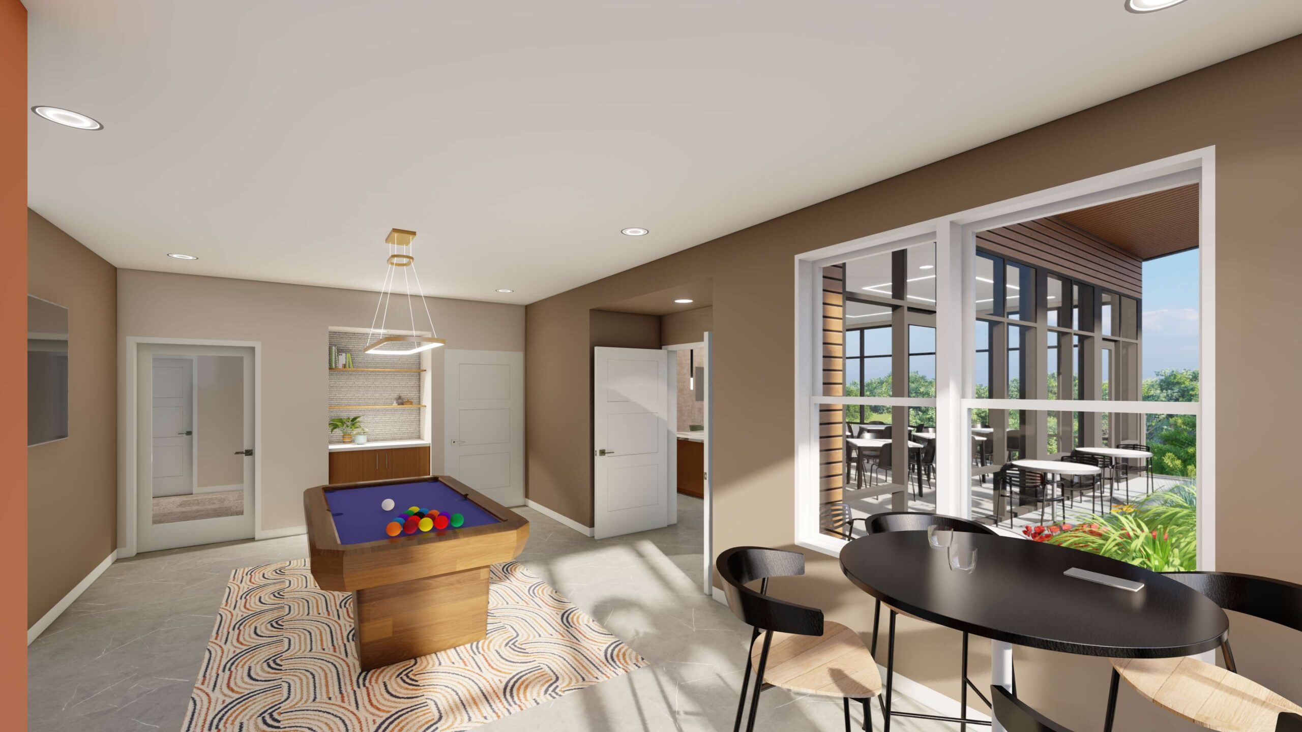 Spectacular rooftop clubroom and game room boasting panoramic views of the city skyline.